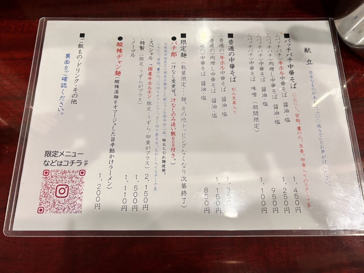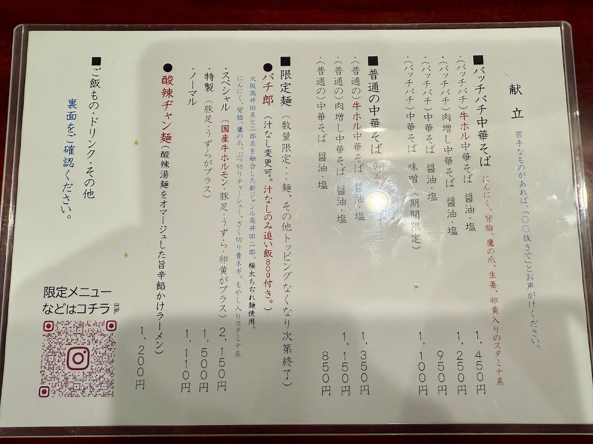 From a reviewer’s perspective, the menu at Chuka Soba Tsuji may appear concise, but it speaks volumes through its focus and confidence. The highlight-and clear centerpiece-of the lineup is 酸辣ヂャン麺, a dish that has earned its place as a regular offering, signaling strong customer demand and the kitchen’s pride in this recipe. As a concluding impression, this menu reflects a philosophy of doing one thing exceptionally well rather than overwhelming diners with excessive choices. 酸辣ヂャン麺 stands out as a bold, character-driven bowl, suggesting a balance of tangy and savory flavors that define the restaurant’s identity. Even without a listed price, the emphasis on this single, signature item reinforces the idea that dining here is about experiencing a refined interpretation of chuka soba, crafted with intention and consistency. Overall, the menu leaves a lasting impression of focus, confidence, and culinary personality-making Chuka Soba Tsuji a memorable stop for diners seeking a distinctive and well-defined noodle experience in Osaka.